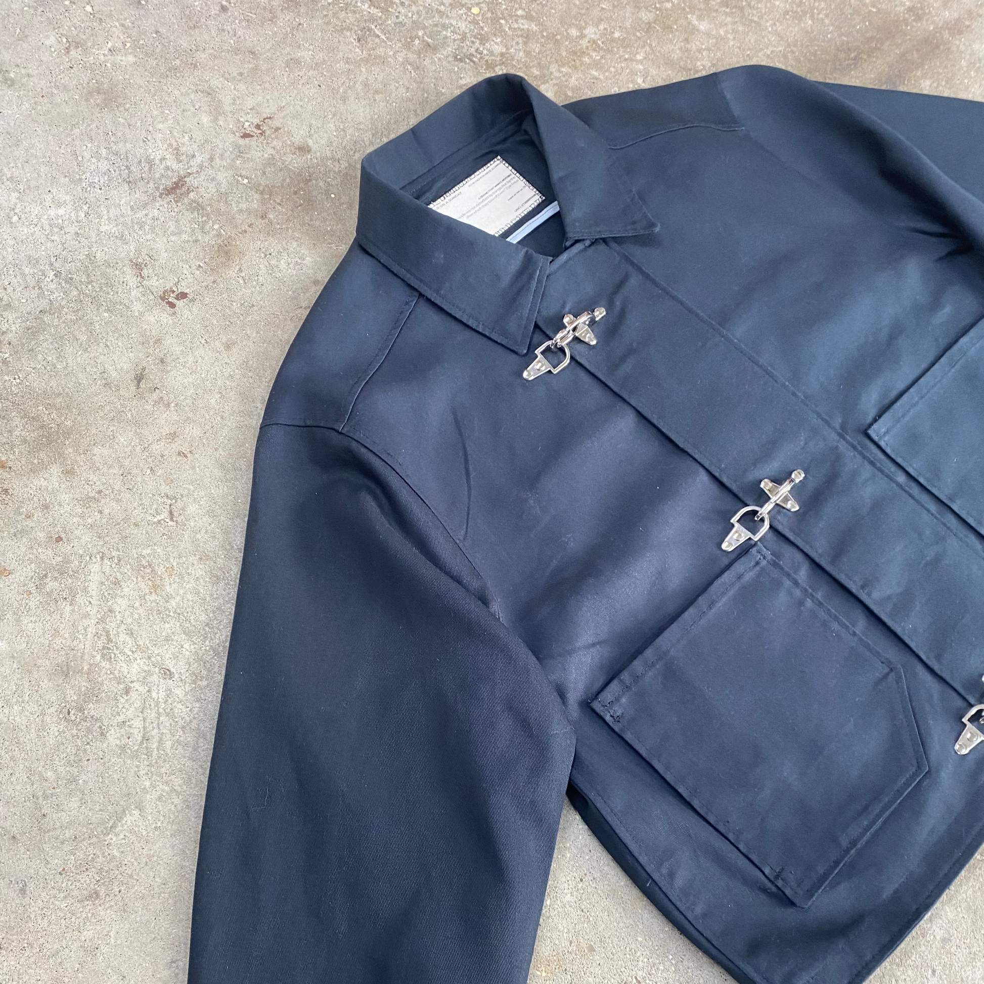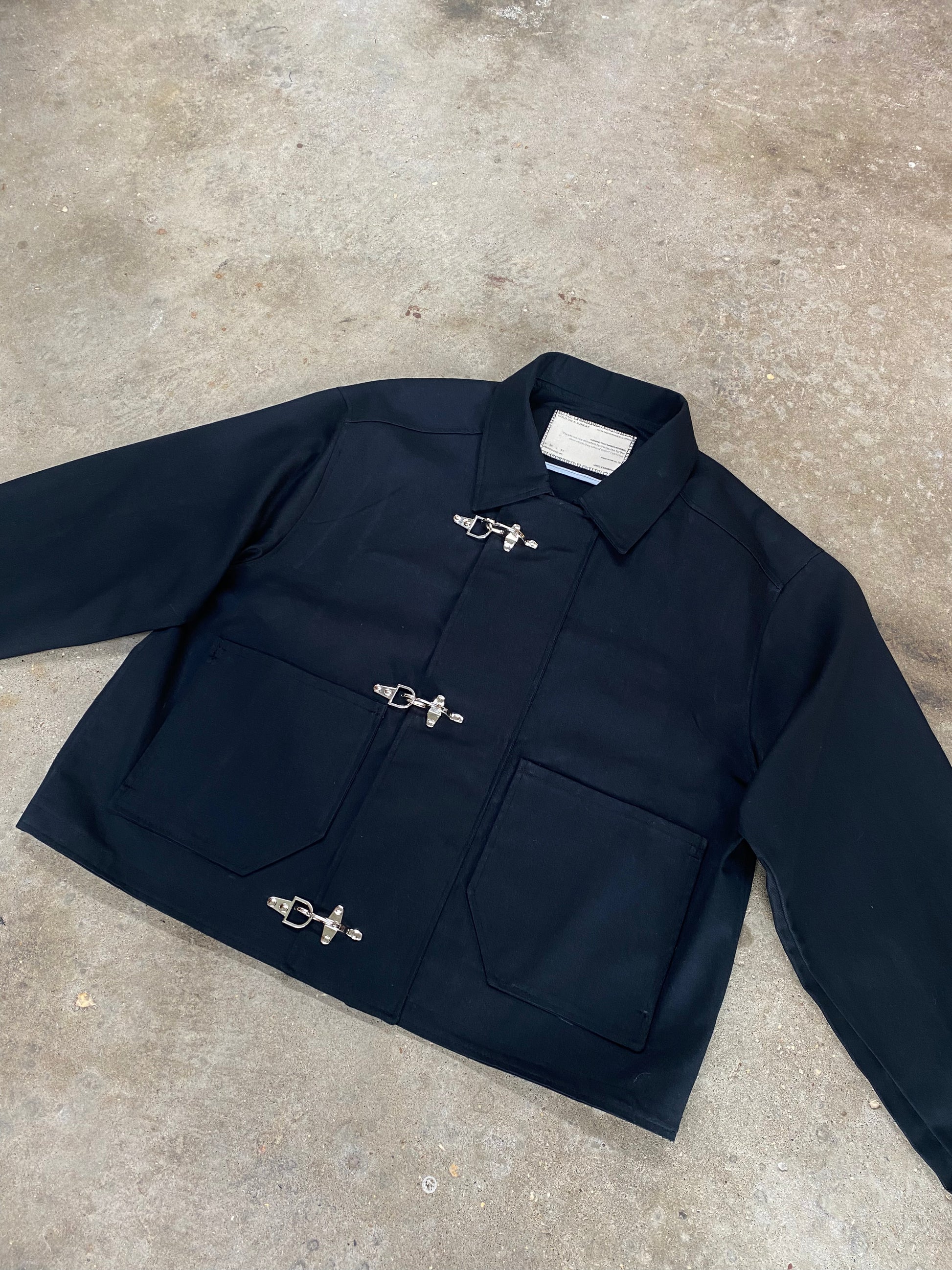 Handcrafted in Manchester from locally-sourced deadstock fabrics, the 3 Fireman Clasp Jacket is a bold, functional outerwear piece designed for both structure and ease. Built with a boxy, oversized fit, it offers comfort, durability, and effortless style.